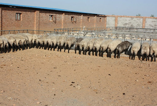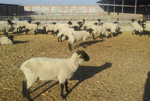 萨福克羊原产于英国英格兰东南部的萨福克、诺福克、剑桥和艾塞克斯等地。该品种羊是以南丘羊为父本,当地体型较大、瘦肉率高的旧型黑头有角诺福克羊为母本进行杂交培育,于1859年育成。
